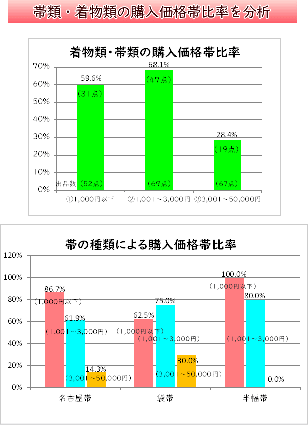 今回、総出品数の約半分、49.8%の着物や帯が、新しい持ち主に変わりました。