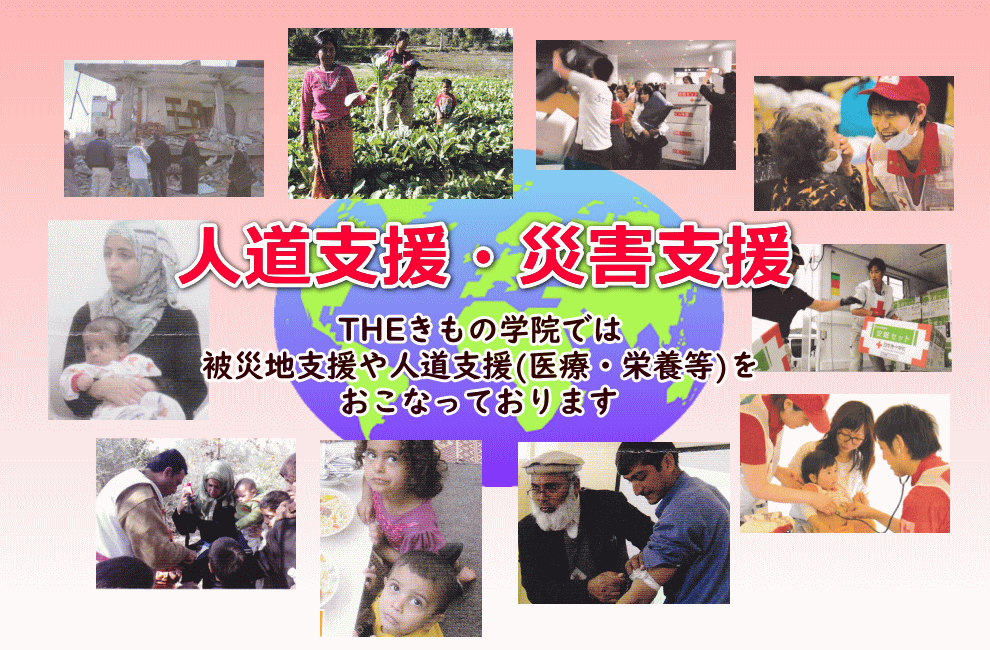 THEきもの学院では、被災地支援や 人道支援(医療・栄養等)を おこなっております